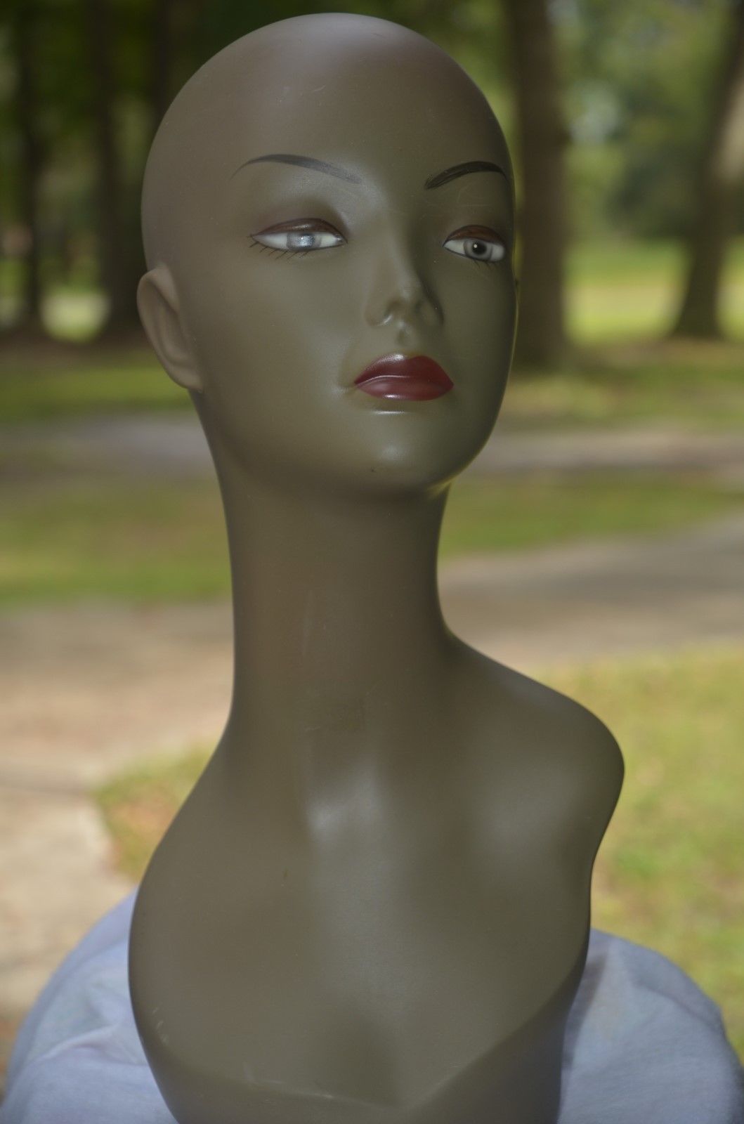 Title (ebay affiliate link): Vintage Style Female Mannequin Head Bust Wig Hat Jewelry Display. MOD.#3.