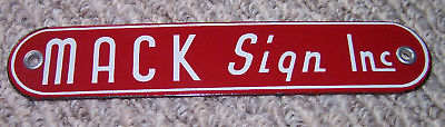 Nice Vintage Mack Sign Inc. Small Porcelain Sign 7 7/8 Inches Wide