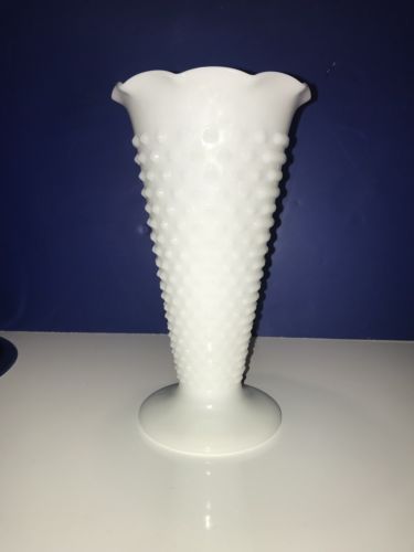Vintage White Milk Glass Pedestal Vase Hobnail