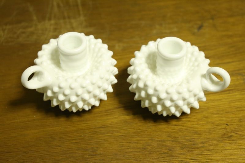 Title (ebay affiliate link): FENTON White HOBNAIL Milk Glass CANDLEHOLDER Candle Holder FINGER LAMPS