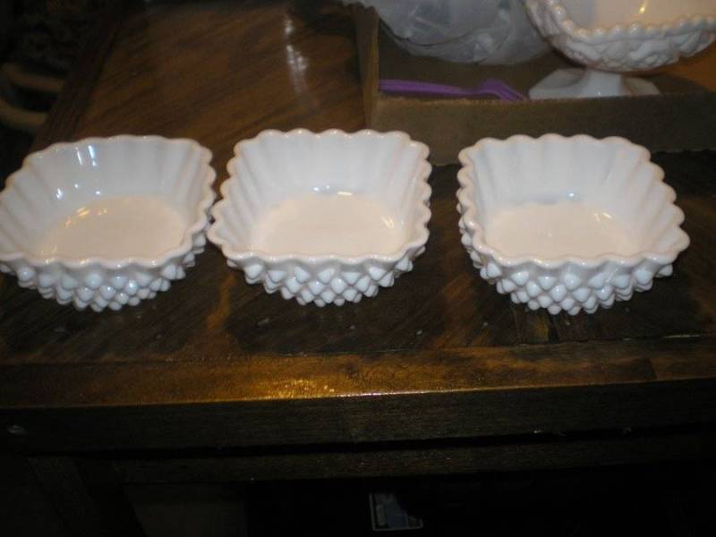 3 Vintage Hobnail Milk Glass Small Candy Dishes