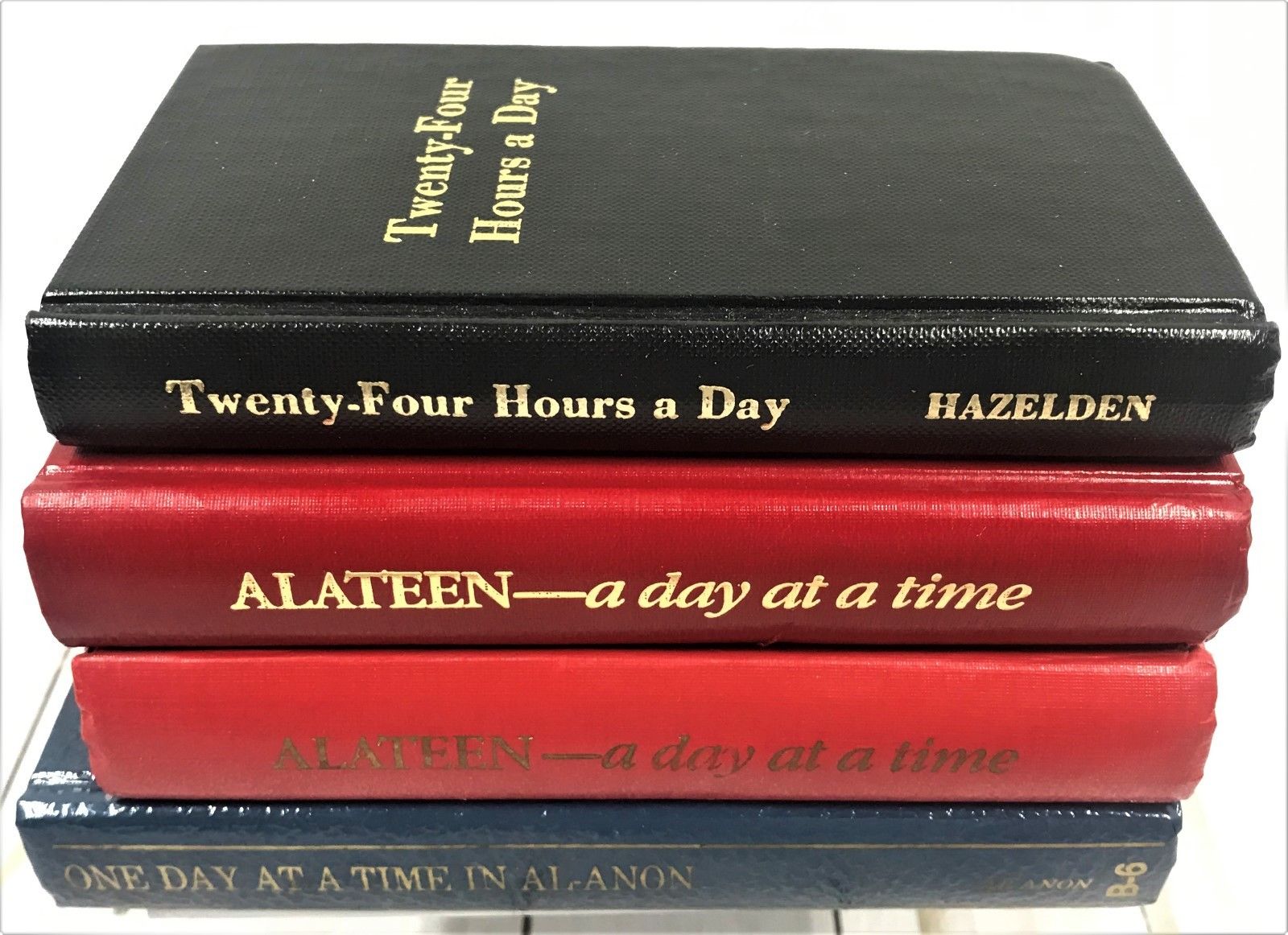 Title (ebay affiliate link): 4 book lot Alcoholics Anonymous Alateen Al-Anon a day at a time 24 hours a day