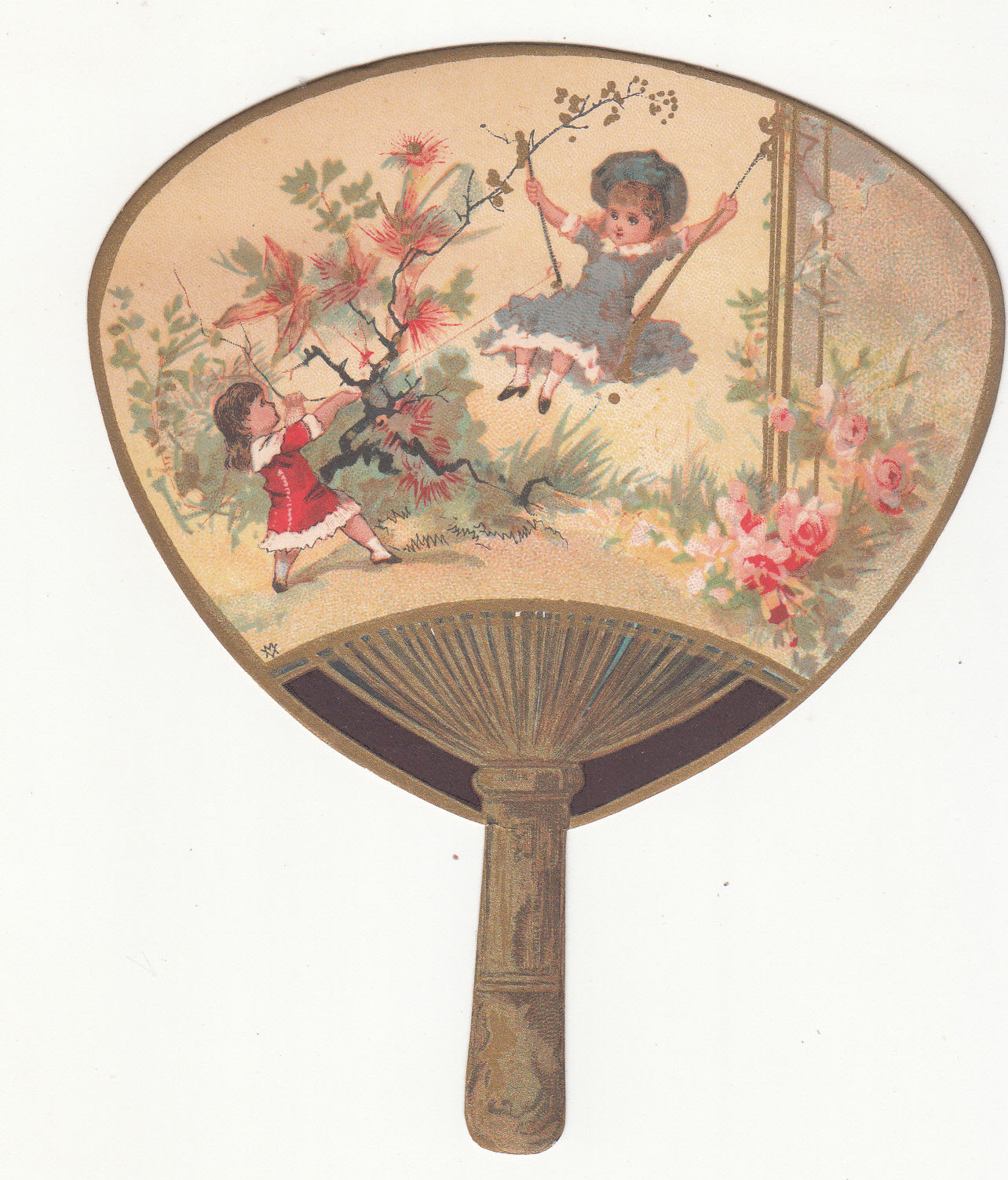 Title (ebay affiliate link): A Stowell & Co Bric a Brac Parlors Boston Fan Diecut Swing Vict Card c1880s