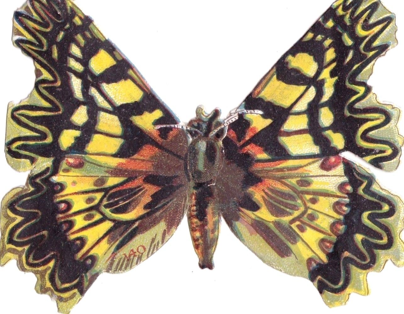 VINTAGE DIE CUT TRADE CARD POULAIN CHOCOLAT "BUTTERFLY" 1800-90.