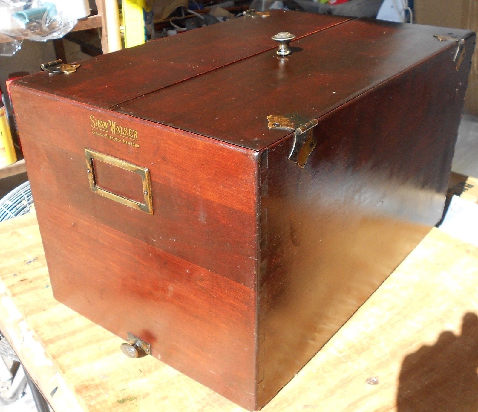 Title (ebay affiliate link): Antique Shaw Walker Chicago Wooden Office Portable Field File Cabinet Box