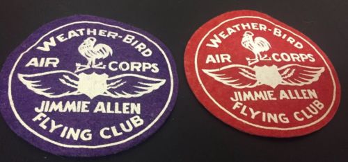 Title (ebay affiliate link): 2 Weather Bird Air Corps Jimmie Allen Flying Club Felt Patch Purple Red Radio
