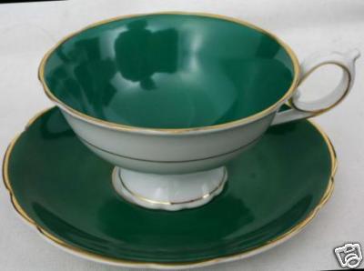 ROYAL BAYREUTH Tea Cup & Saucer /Forest Green + Gold