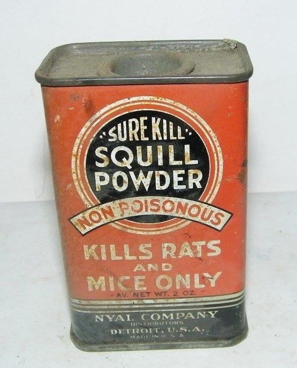 Title (ebay affiliate link): vintage tin-sure Kill squill powder non poisonous kills rats & mice only detroit