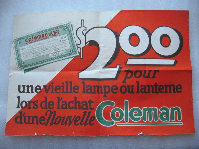 VINTAGE CANADA COLEMAN LAMP LANTERN FRENCH POSTER TORONTO ONTARIO SIGN STOVE