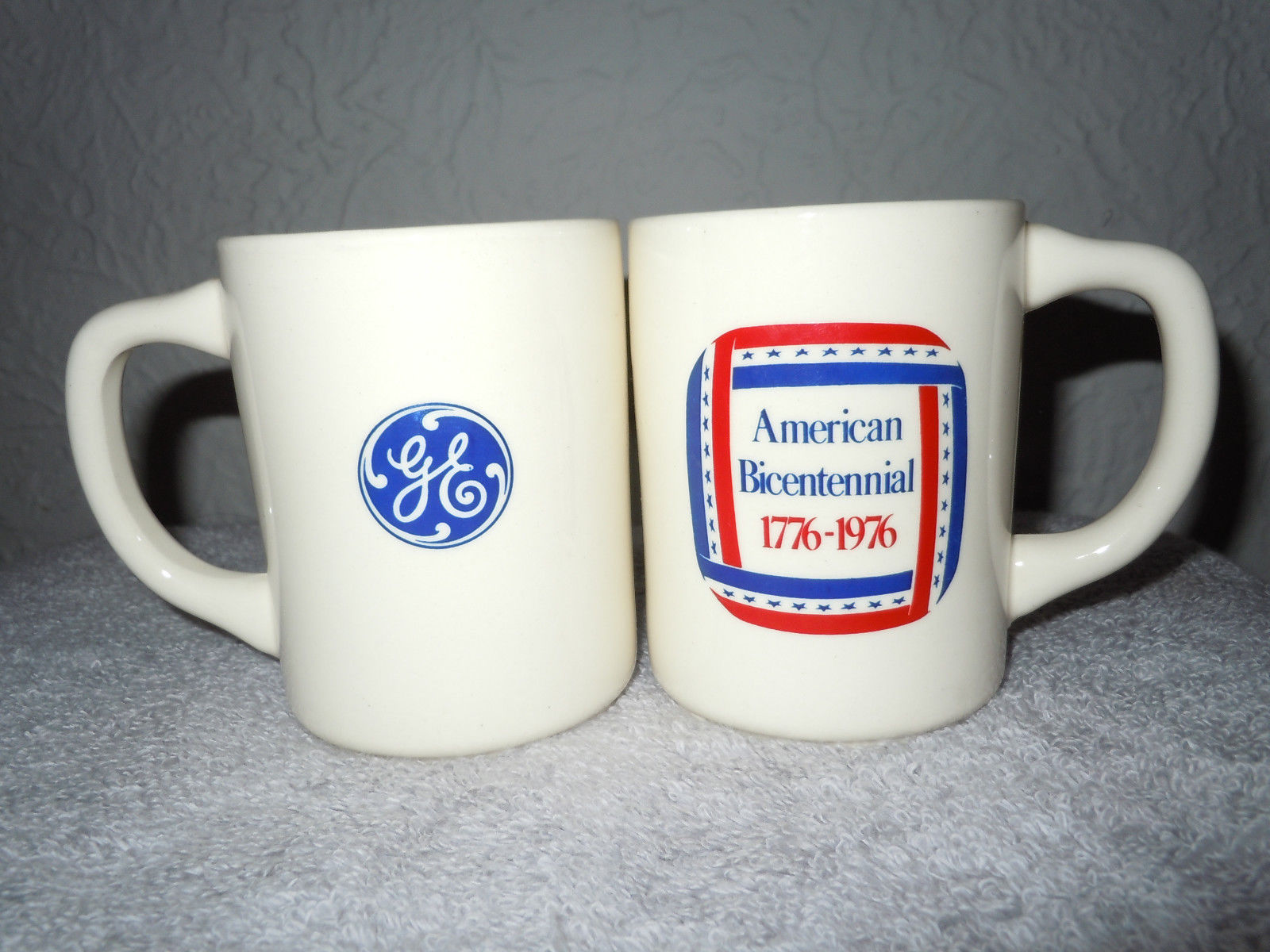 Title (ebay affiliate link): 2 Vintage Ceramic GE General Electric Coffee Tea Latte Mugs Advertising USA