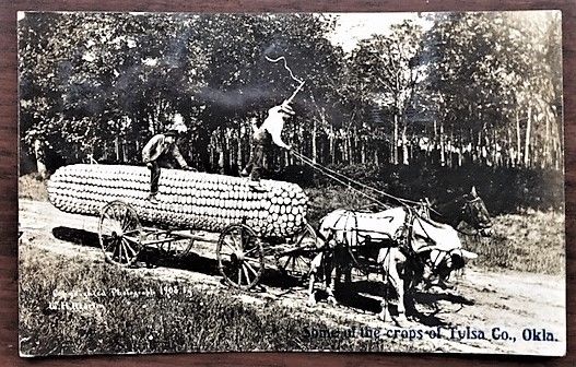 Title (ebay affiliate link): TULSA COUNTY, OK GREETING: Exaggerated Corn Ear on Horse-Drawn Wagon, 1909 RPPC
