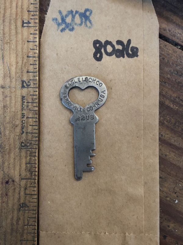 Original Antique Steamer Trunk Key Eagle Lock Co. 22U8 Old Good Condition -8026
