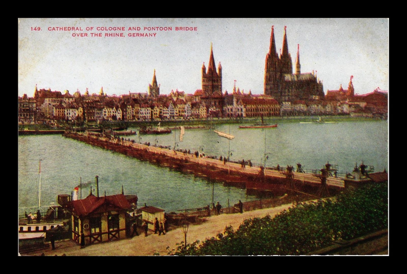 DR JIM STAMPS PONTOON BRIDGE RHINE RIVER CATHEDRAL COLOGNE GERMANY POSTCARD