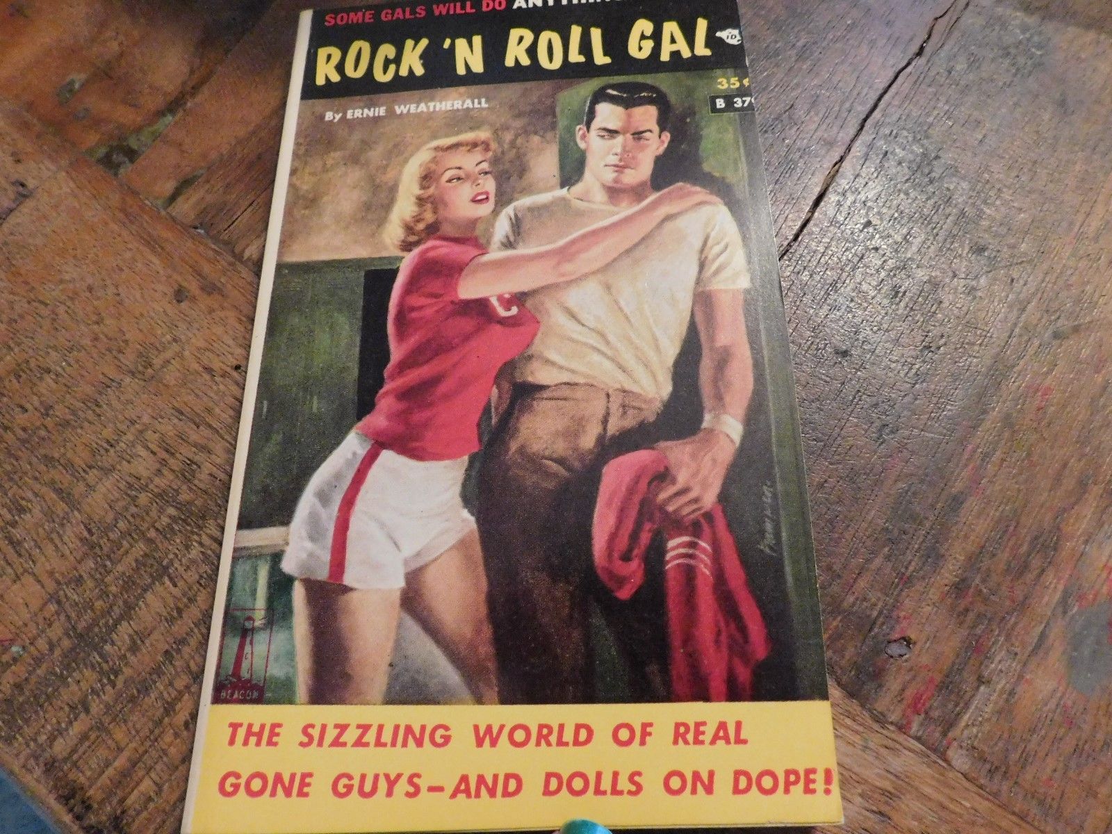 Title (ebay affiliate link): Vintage Sleeze Paperback Rock n'' Roll Gal by Ernie Weatherall 1957 Beacon Books