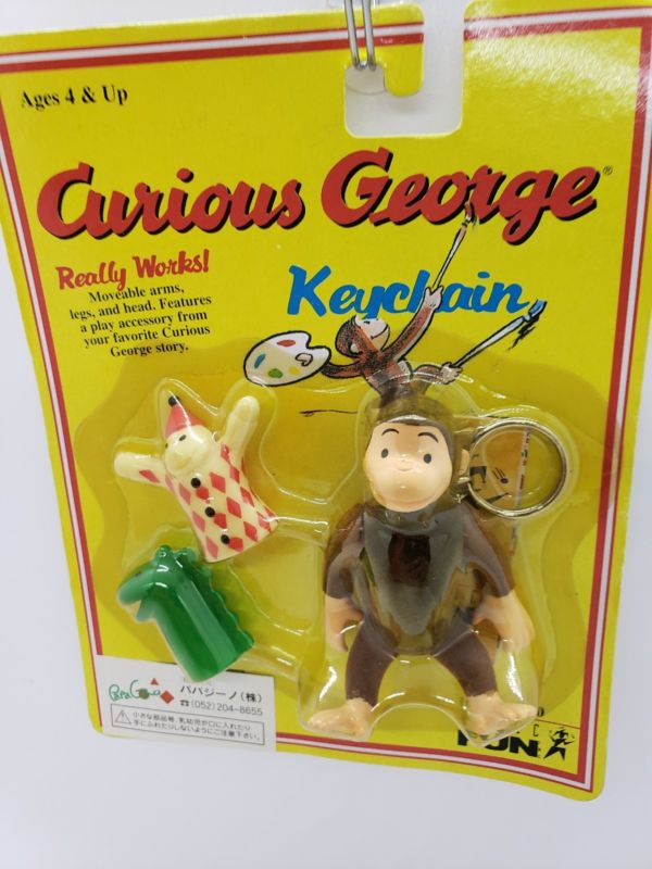 Title (ebay affiliate link): Curious George Keychain Moveable Arms Legs Head Puppets 1998 vintage Basic Fun