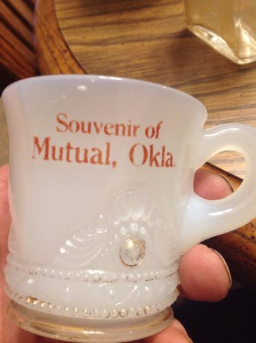 MUTUAL OKLA OKLAHOMA MILK GLASS EAPG CUP SOUVENIR