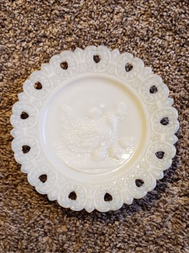 Milk glass decorative plate chicken & chicks 6.5"