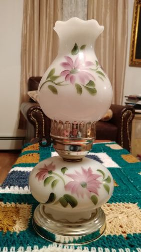 Title (ebay affiliate link): Hurricane Table Lamp Hand Painted Pink Flowers Milk Glass