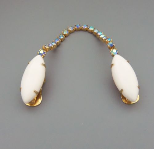 Title (ebay affiliate link): Vintage White Milk Glass Aurora Borealis Rhinestone Sweater Dress Thin Clip