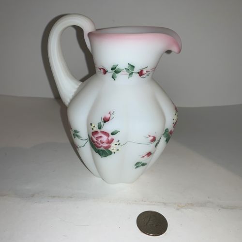 Hand Painted Milk Glass Pitcher Signed J. L. Barnum - Fenton?