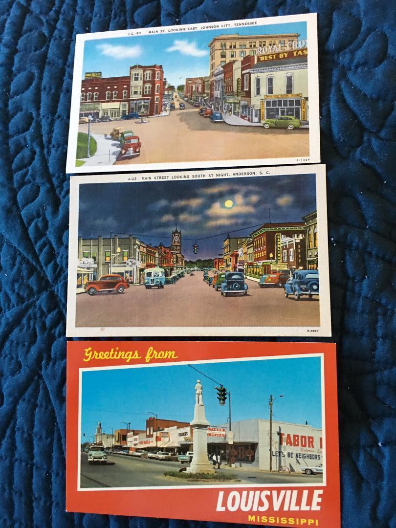 Title (ebay affiliate link): Lot of 3 Downtown/cars postcards, Louisville MS, Anderson SC, Johnson City TN