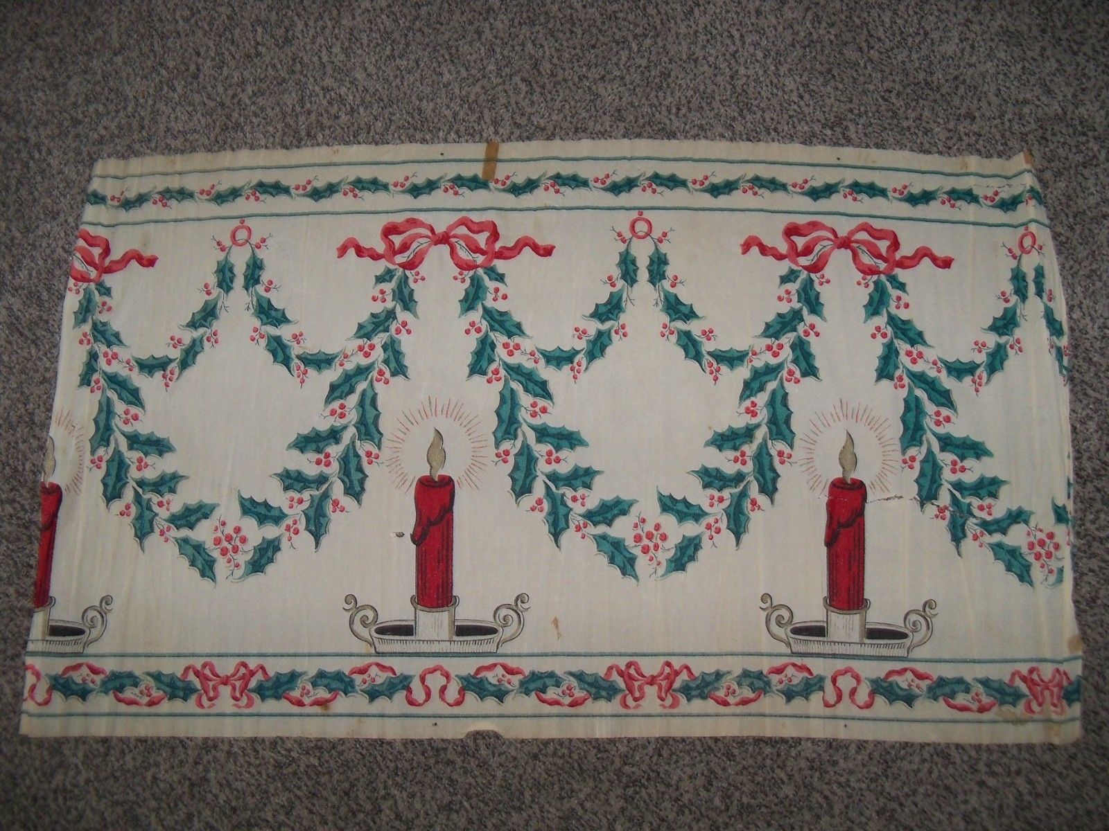 Vintage 1920''s Holly Candles Christmas Crepe Paper 20 x 30 inches
