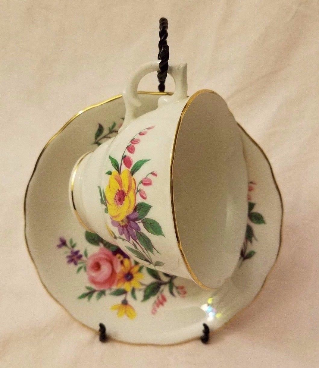 Title (ebay affiliate link): Royal Vale Tea Cup and Saucer Pink & Yellow Flowers Bone China England Gold Trim
