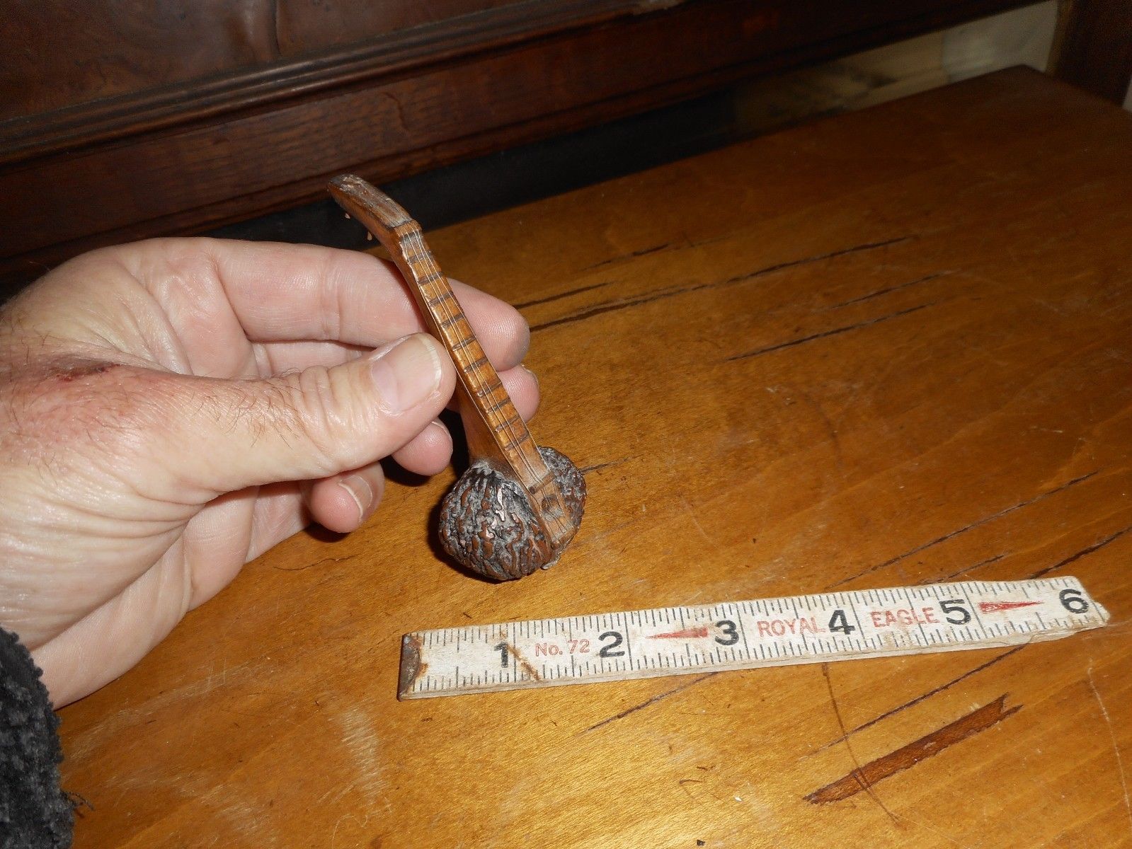 Title (ebay affiliate link): miniature stringed instrument crafted of carved wood and nut; rare tiny lute