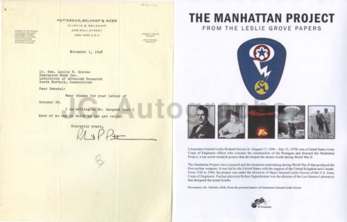 Title (ebay affiliate link): R. Patterson Sec of War To Leslie Groves (signed) The Atomic Bomb Project