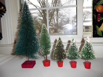 Title (ebay affiliate link): 5 VINTAGE BOTTLE BRUSH TREES SNOW CAPPED 61/2" 14 1/2 T CHRISTMAS VILLAGE TRAIN