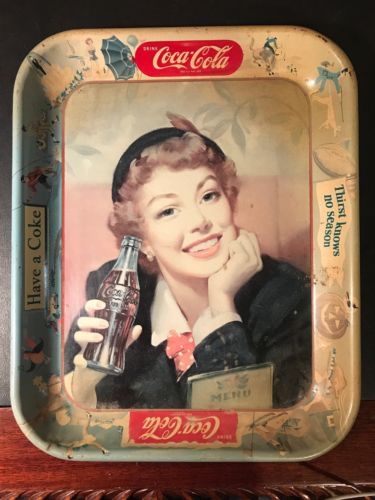 Title (ebay affiliate link): Vintage 1950''s Coca Cola Menu Girl Metal Serving Tray "Thirst Knows No Season"
