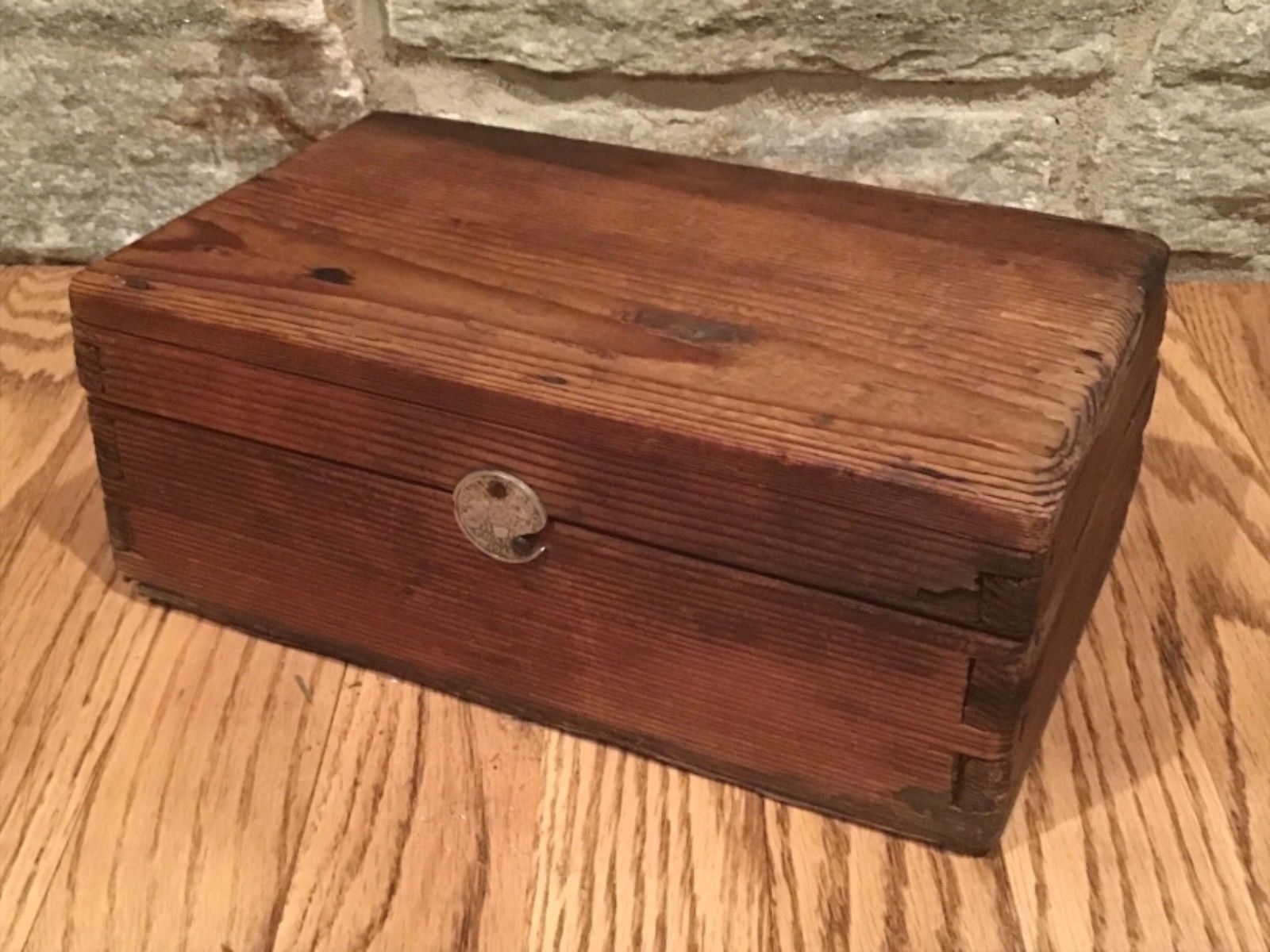 Title (ebay affiliate link): Antique Handmade Solid Wood Box, Dovetail Corners,1943 2 Francs Coin Closure