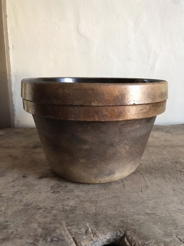 Title (ebay affiliate link): Large Old Stoneware Crock Bowl Double Rim PATINA AAFA Primitive Dish