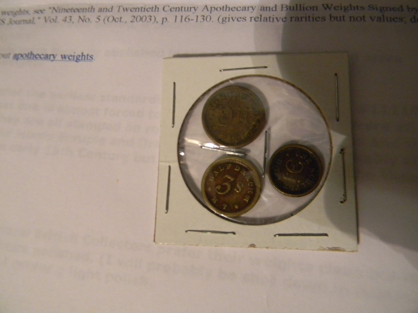 3 DIFFERENT APOTHECARY WEIGHTS 1, 2, 3 SCRUPLES HENRY TROEMNER W HISTORY PAGE