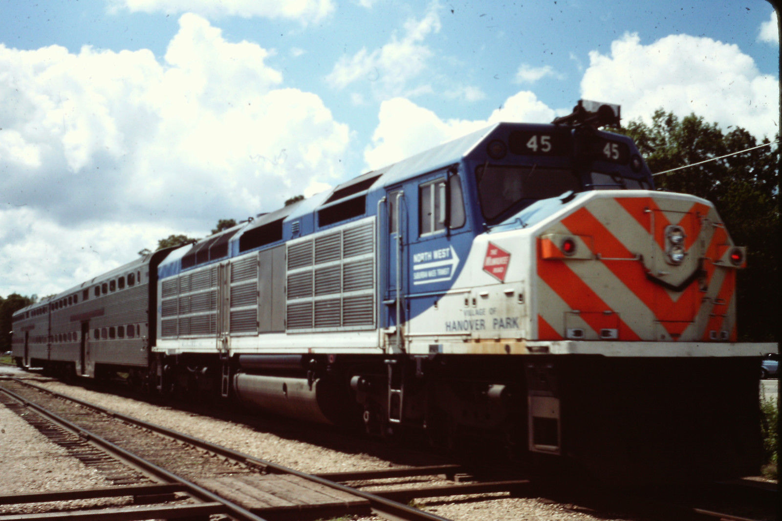 Milwaukee Road MILW 45 Hanover park commuter Kodachrome railroad slide passenger
