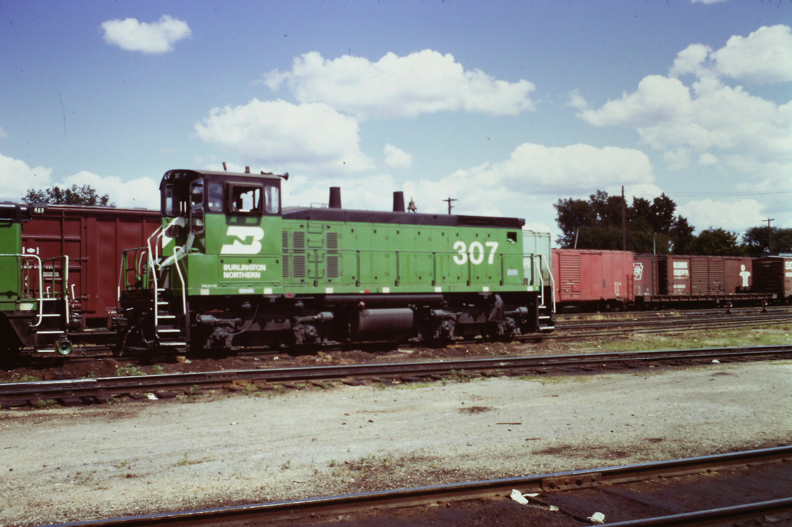 BN 307 SW1500 1973 Kodachrome railroad slide Burlington Northern EMD SW switcher
