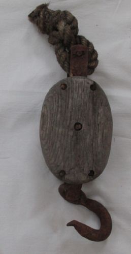 Title (ebay affiliate link): VTG Single Rope Wooden BLOCK & TACKLE Pulley HOOK Decorative Primitive