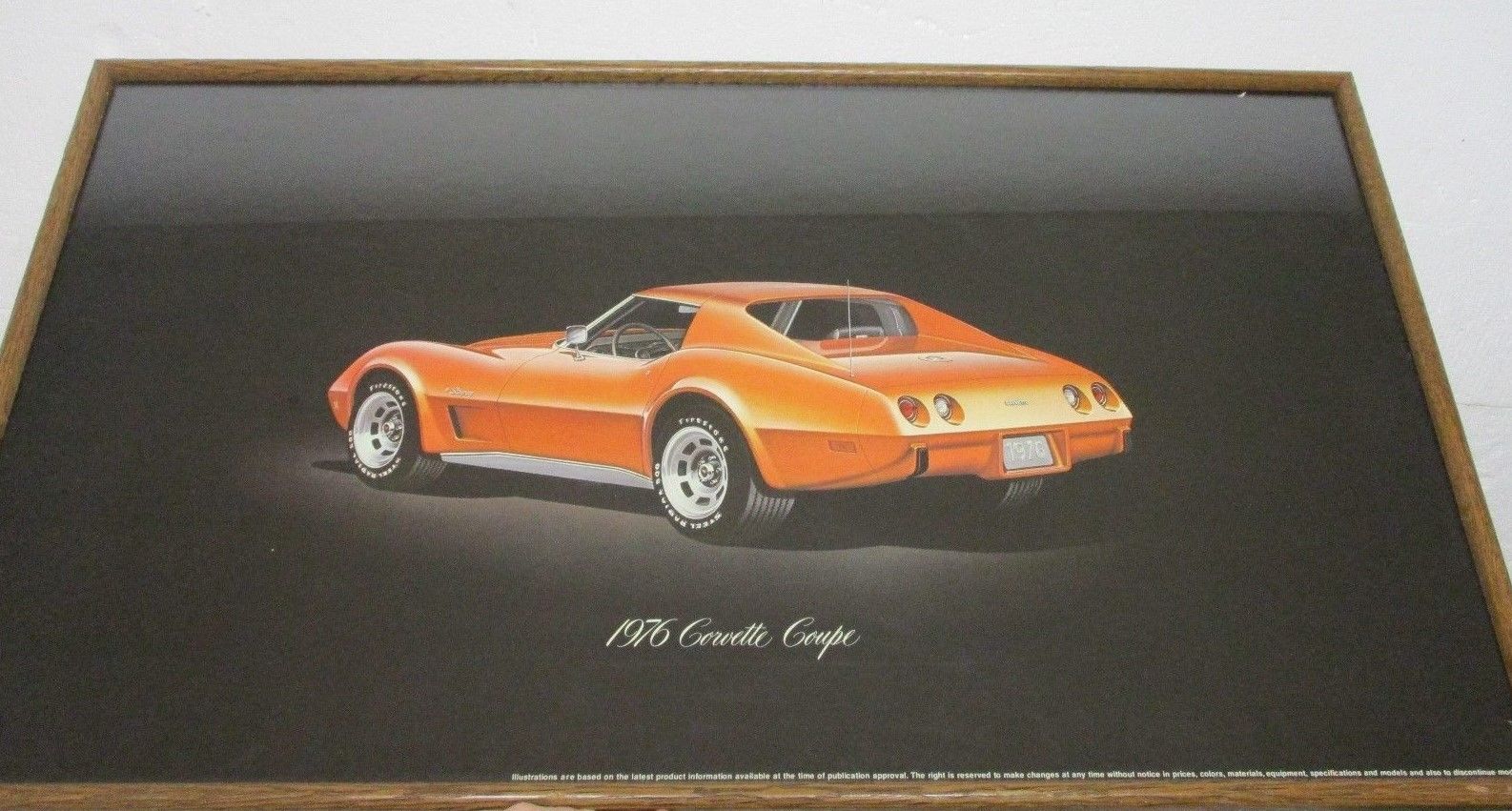 Title (ebay affiliate link): 1976 Corvette Coupe Dealership Showroom Sign/Poster Dealer Promo Vintage Framed