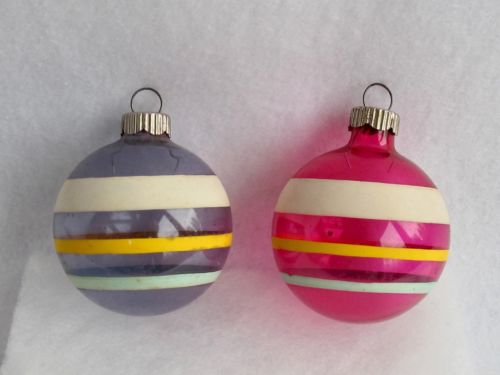 Title (ebay affiliate link): 2 Vtg UNSILVERED WAR ERA SHINY BRITE STRIPED BALLS Christmas Ornaments 1940s