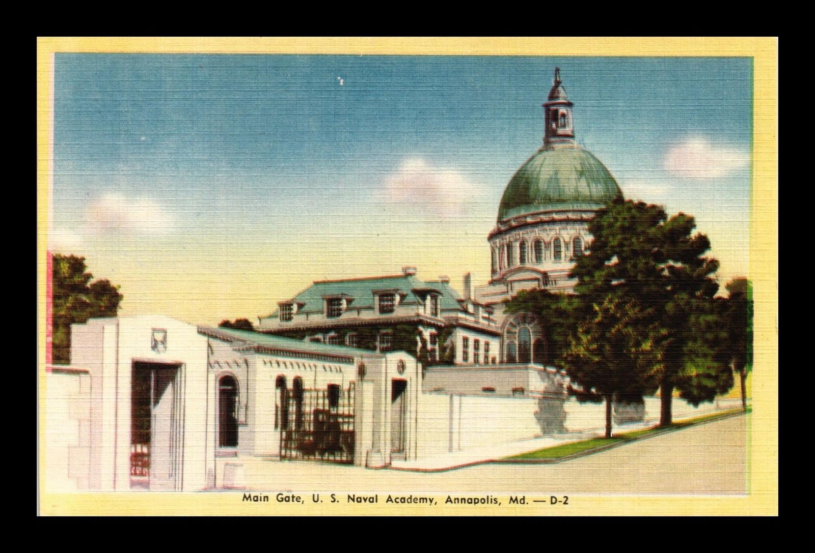 Title (ebay affiliate link): DR JIM STAMPS US MAIN GATE NAVAL ACADEMY ANNAPOLIS POSTCARD LINEN