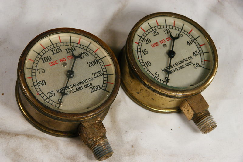 HARRIS CALORIFIC BRASS GAUGES STEAMPUNK 2 3/4" FACE 1/4" NPT OXY-ACETELYNE