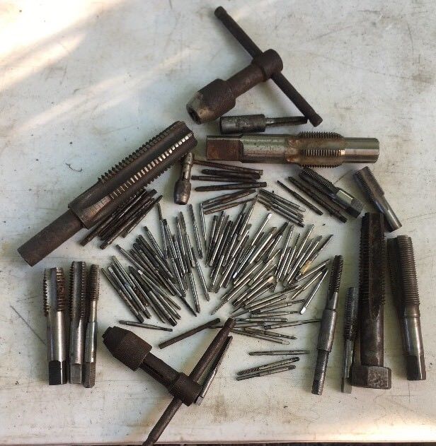 Title (ebay affiliate link): Tap Lot (~ 100) Machinist Tool Box Clean Out Taps Handles Tool Maker Gunsmith Et