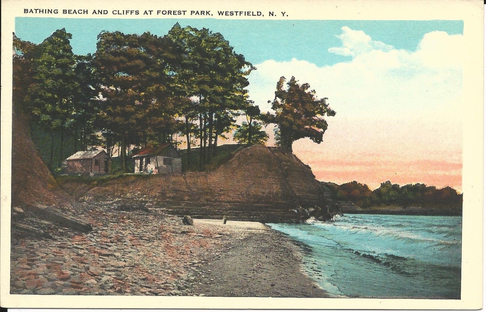 Title (ebay affiliate link): OLD WESTFIELD NY BATHING BEACH & CLIFFS AT FOREST PARK 2 COTTAGES LAKE ERIE