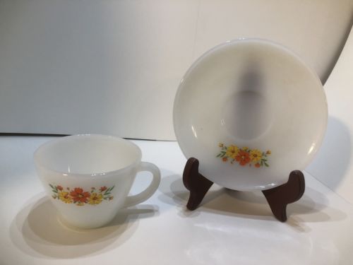 Title (ebay affiliate link): Vintage Fire King White Milk Glass Tea Cup And Saucer Yellow And Orange Flowers