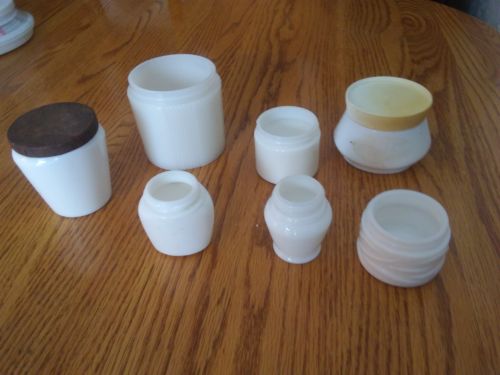 Vtg Lot of 7 White Milk Glass Cosmetic Cream Jars