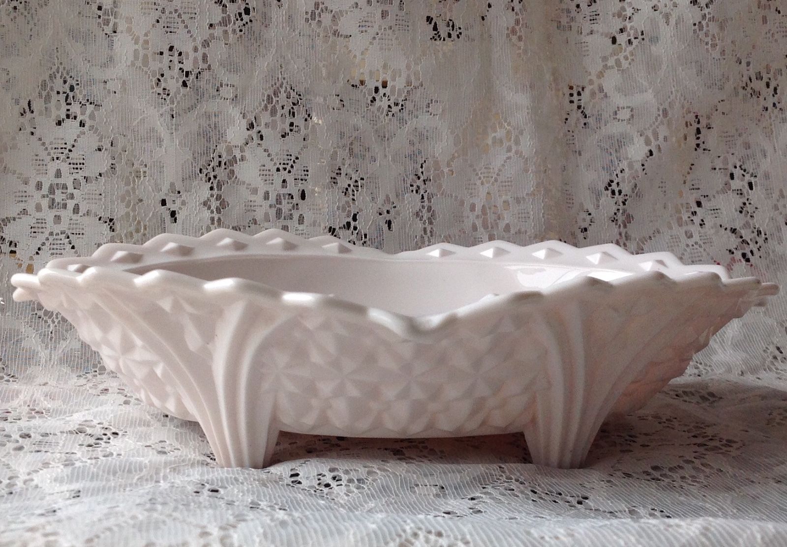 Title (ebay affiliate link): 10" Jeannette Buttons and Bows Shell Pink Milk Glass Footed Mid Century Bowl