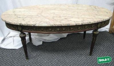ANTIQUE MARBLE & WOOD OVAL COFFEE TABLE Spain