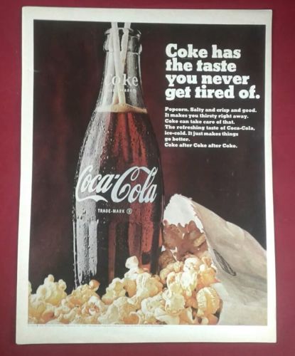 Title (ebay affiliate link): 1968 Coca Cola Ad "The taste you never get tired of"