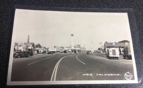 Title (ebay affiliate link): VINTAGE FRASHER''S RPPC - STREET VIEW INDIO, CA - SERVICE STATIONS & MORE