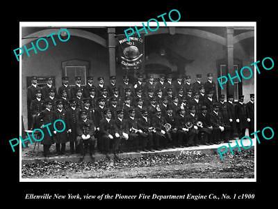 OLD LARGE HISTORIC PHOTO OF ELLENVILLE NEW YORK, PIONEER FIRE DEPARTMENT c1900